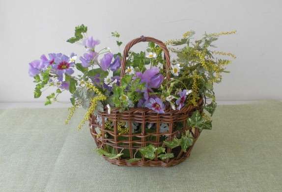 神戸・明石のフラワースクール・花姉妹 ラ・フルール ラ・スーフ 春のレッスン 2025/04/14 フラワーアレンジメント ミモザのバスケットアレンジ フラワーアレンジメント 3月のレッスン ミモザのバスケットアレンジ 3月は卒業や退職と花を贈ることが多々あります。 花束もいいですがプレゼントアレンジにもピッタリな バスケットアレンジに挑戦しました。 ミモザはミニスワッグにして そのままドライフラワーに オアシスをセットしたアレンジは黄色と相性のいいパープルで 素敵なバスケットアレンジになりました。